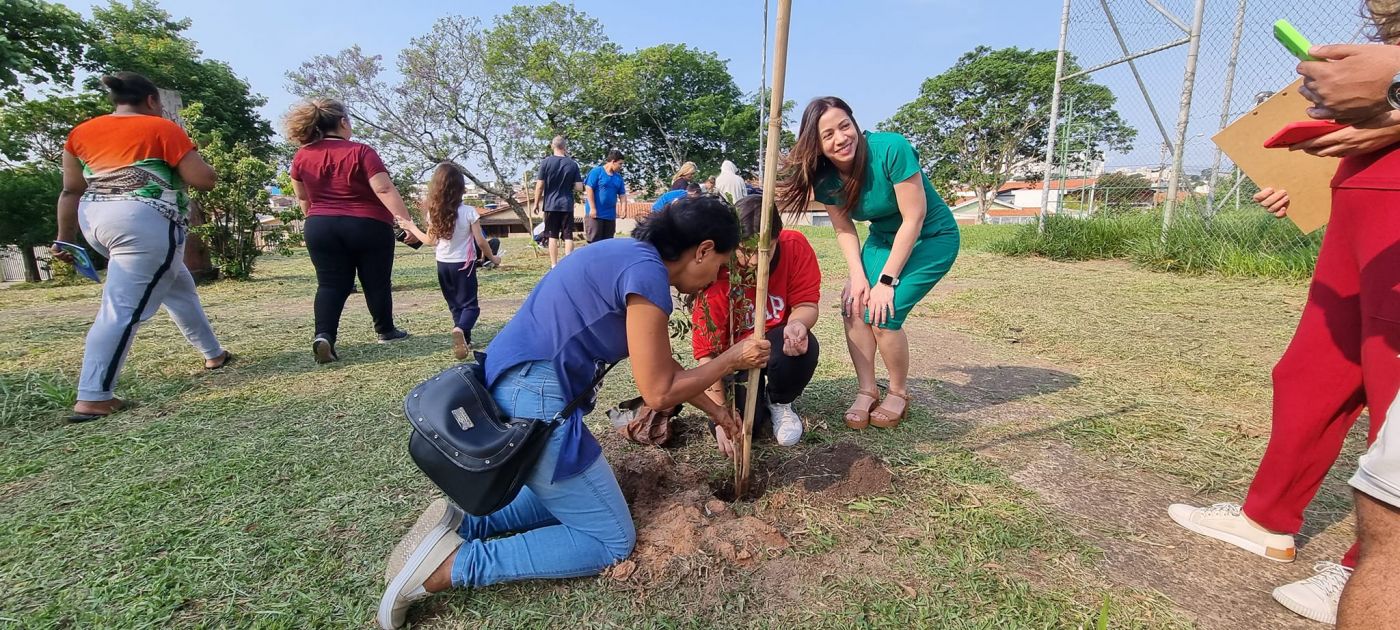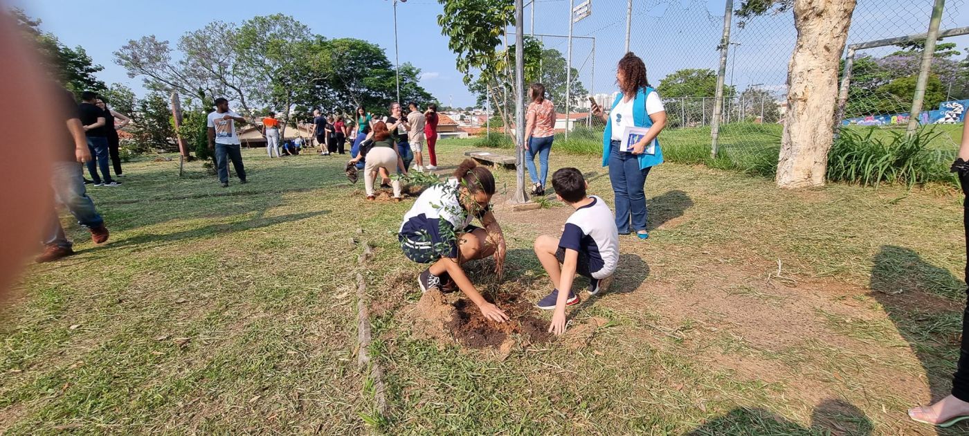 Ontem, quarta-feira, 18/10, às 15h, tivemos a alegria de plantar mudas frutíferas nativas na Praça ao lado da EE Júlio de Mesquita, no Jd das Oliveiras.